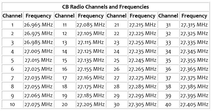 | CB Radio Channels and Frequencies | |||||||