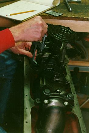 | Measuring connecting rod bolt stretch using 3 inch micrometer and lots of patience |