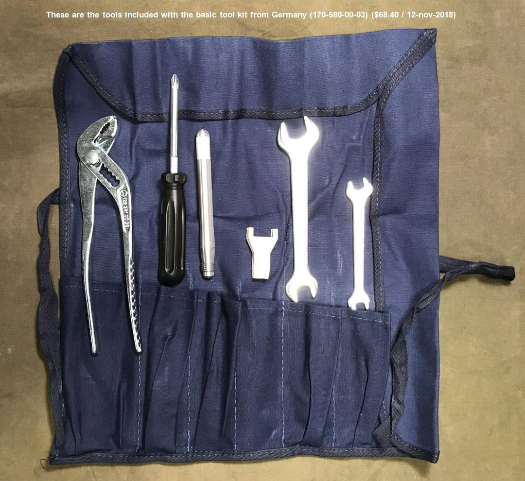 Courtesy: Jeff Miller / December 6, 2018 / iPhone 7The basic tool kit was ordered through the MBCC and came from Germany. Photo 3 includes several additional tools (the tow hook, five short wheel bolts, and a 6 mm hex key) – also ordered through the MBCC, but not included with the basic kit.
