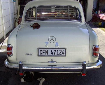 I bought the car in December, 2008 from a local guy who had it since 1972. The previous owner, Johan Stockenstrom, gave me all the service and repair documents, plus the original set of spare keys. With the help of my three sons, we had the Mercedes-Benz Ponton ready for the George Old Car Show on February 1, 2009. The city of George is about 400 kilometers from Somerset West. I had to replace the engine mounts for the trip; otherwise, it ran like a clock.