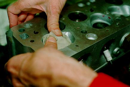 |  | Upper Left--Using clay to measure combustion chamer volume; pressing
