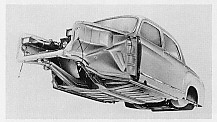 The design of the sub-frame facilitated removal of the engine, gearbox, suspension and recirculating ball steering as a single unit from beneath the vehicle. View the Engine Removal page.