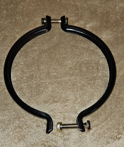 As mentioned, it becomes a little more complicated if you want to reuse the original ring. To do this, we placed the Hydrak canister in a hydraulic press with a wooden plate on top. Then by applying light pressure to the wooden plate with the press, the old clamp ring can be placed back around the pressure canister. To hold it in place, I attached a suitable hose clamp around the clamp ring itself.